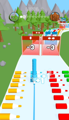 在跑酷中推笔进行前进,将所有的场地上染上需要闯关的对应颜色,这种创新的玩法让跑酷过程充满艺术感。