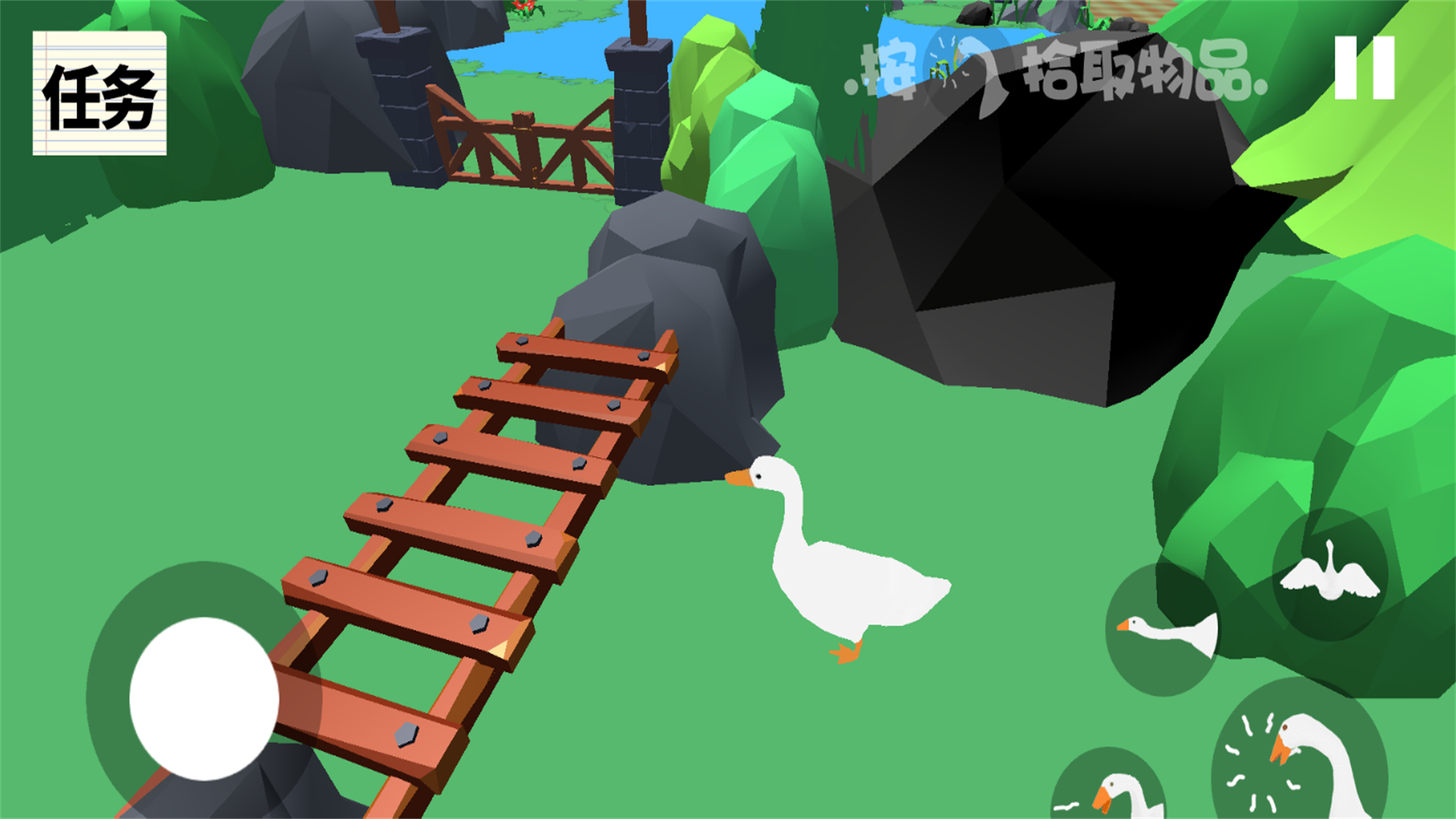 游戏采用3D视角,自由度极高,行走过程中还可以加速行驶。解决问题内容。玩家可以自由切换第一人称和第三人称视角,全方位感受大鹅的捣蛋过程,加速奔跑时还会触发滑稽的物理效果。