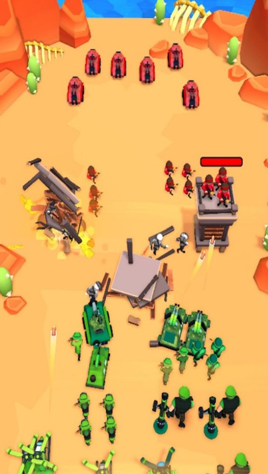 游戏最具特色的士兵合并系统允许玩家创造独特的部队组合,与各具特色的对手展开激烈战斗。玩家将面临强大的BOSS和坚固的堡垒挑战,需要运用智慧证明自己军队的实力。创新的闲置策略玩法融合了战士培养元素,玩家可以通过两桶合并机制打造最强坦克部队。多样化的战斗模式为游戏增添了更多可玩性。