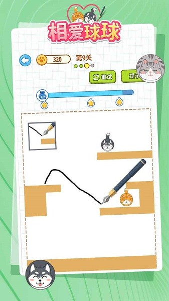 相爱球球是一款充满创意与欢乐的休闲益智游戏,它将简单的玩法与丰富的想象力完美结合,为玩家带来轻松愉快的游戏体验。游戏的整体难度适中,适合各个年龄段的玩家。在游戏中,你需要通过画线的方式,帮助两只可爱的狗狗顺利汇合。在这个过程中,你可以尽情发挥自己的脑洞,创造出各种搞笑又温馨的名场面。无论是独自解谜,还是与朋友分享乐趣,这款游戏都能让你感受到独特的快乐。如果你喜欢休闲益智类游戏,不妨下载体验一下!