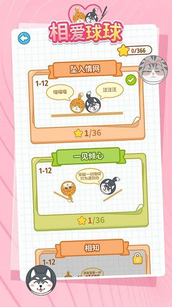 《相爱球球》是一款以智力解谜为核心的画线休闲小游戏,故事围绕两颗失散的可爱球球展开。游戏中,你将扮演一位充满爱心的解谜者,帮助萌萌的猫球和狗球跨越重重障碍,最终相遇碰撞。每一关都设计了不同的场景和挑战,需要你巧妙运用画线技巧,为两颗球球搭建相遇的桥梁。无论是简单的直线,还是复杂的曲线,都能成为它们相遇的关键。快来加入这场充满爱与智慧的冒险,帮助球球们重逢吧!