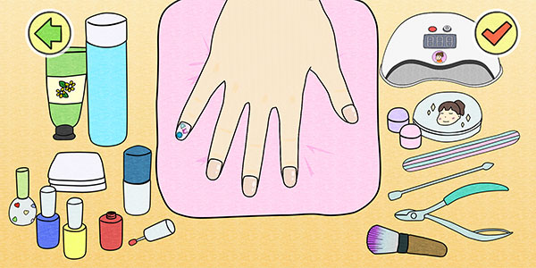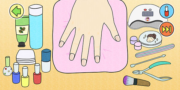 选择后进入美甲界面,按照提示使用指定工具对指甲进行手部护理,点击右上方可快进。护理过程中会有详细的操作指引,包括正确的工具使用方法和护理顺序,帮助玩家学习专业的美甲知识。