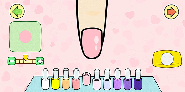 护理完成后就可进入涂指甲油的阶段了,用户可根据自己的喜好选择指甲油进行涂取,涂取完成后点击右上角的箭头可进入下一阶段。游戏提供多种涂刷工具,从基础的单色刷到专业的渐变刷,满足不同技法需求。