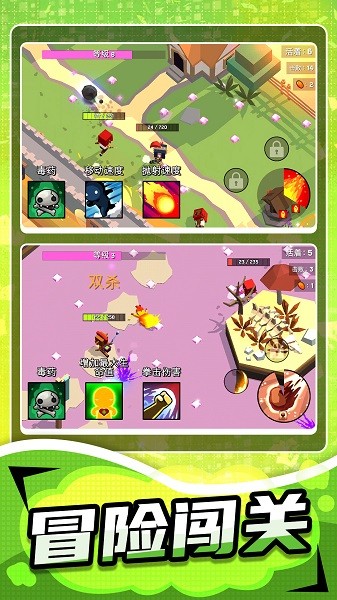 在这款精心打造的竞技游戏中,你将体验到收集与成长的乐趣。通过收集战场上的各种奖励和强力武器道具,不断强化你的英雄角色。游戏提供了深度的角色培养系统,让你可以通过多种途径提升英雄的战斗能力。同时,你需要磨练自己的战斗技巧,掌握每个英雄的独特技能组合,才能在激烈的对抗中存活更长时间。游戏完美融合了精美的像素画面与富有策略性的玩法,操作设计简洁直观,即使是初次接触此类游戏的新手玩家也能快速上手。丰富的游戏内容和持续更新的活动,保证你每次登录都能获得新鲜的游戏体验。