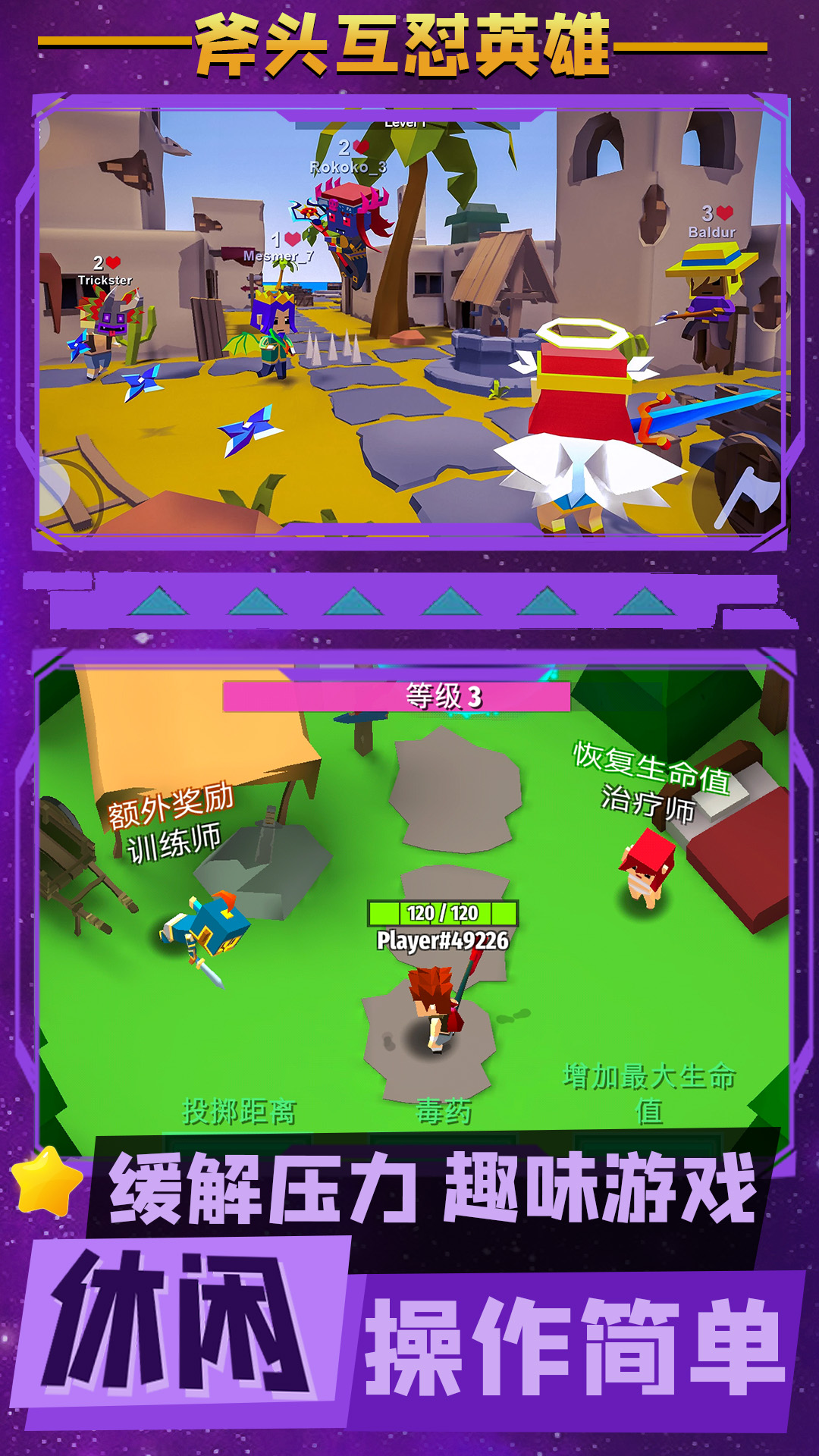 《斧头互怼英雄》是一款充满刺激与策略的刀斧IO竞技游戏。玩家将操控独特的像素风格角色,在充满挑战的战场上投掷斧头与其他玩家展开激烈对抗。游戏融合了快节奏的战斗、丰富的武器系统和多样化的地图设计,每局仅需2分钟即可体验紧张刺激的生存对决。通过精准的投掷技巧和灵活的走位,玩家需要击败所有对手,成为最后的胜利者。游戏还提供多种强力道具和炫酷盔甲,让每场战斗都充满变数和惊喜。