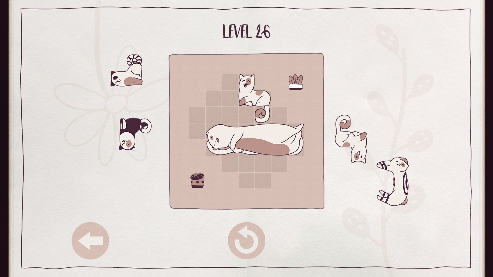 游戏最大的亮点在于其创新的拼图玩法与独特的美术风格相结合。32只造型各异的手绘猫咪不仅外形可爱,每只猫咪还有自己独特的个性,玩家可以在解谜过程中慢慢了解和收集它们。游戏在传统解谜玩法的基础上加入了丰富的策略元素,解谜碎片可以进行多种操作变换,如旋转调整角度、镜像对称翻转、重叠组合以及克隆复制等,这些创新机制让每个关卡都充满变数和乐趣。游戏界面简洁清爽,操作反馈流畅自然,为玩家带来舒适愉悦的游戏体验。