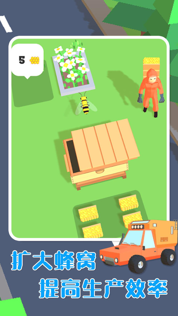 游戏采用简单直观的操作模式,只需轻松点击屏幕就能完成所有操作。你需要精心管理养蜂场中的每一只蜜蜂,合理安排它们的采蜜路线,才能收获更多优质的蜂蜜。游戏还模拟了完整的产业链,你可以将这些蜂蜜进行深加工、精美包装,然后通过不同渠道销售出去,赚取更多利润。随着游戏深入,你还能解锁更多有趣的玩法和挑战。