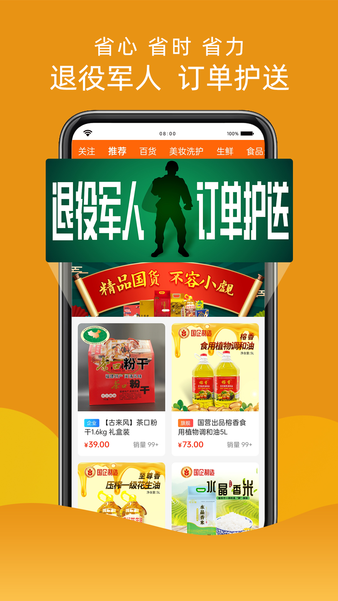 退役军人配送服务:汇趣拼平台的每一个订单都由退役军人组成的专业配送团队负责运送。这些配送人员不仅提供高效准时的配送服务,还会以军人特有的严谨态度确保商品安全送达消费者手中。