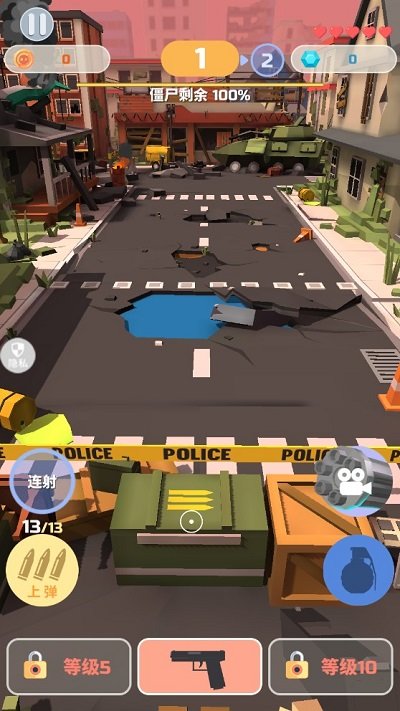 在打斗的过程中,玩家可以清晰的看到自己的血量,方便玩家更快的找到对策对抗僵尸,血量过低时会触发危险警报,提醒玩家及时寻找掩体或使用医疗包;