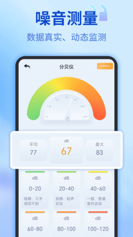 除了基础的测量功能外,手机测距测量仪还提供了多项实用功能:专业的噪音计算功能可以帮助用户实时监测周围环境的噪音水平;高度测量功能采用智能算法,能够快速准确地测量各种物体的垂直高度;数据存储功能会自动保存用户的每一次测量记录;历史查看服务则让用户能够随时回顾之前的测量数据,方便进行对比和分析。这些贴心的功能设计,让测量工作更加高效便捷。