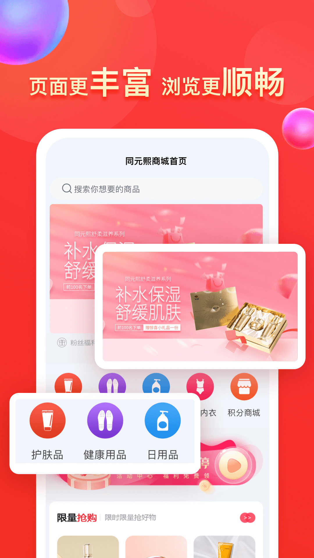同元熙app下载,这是一款汇聚海量优质商品的综合购物平台,致力于为用户打造高品质的生活方式。在同元熙app中,您可以轻松选购丰富多样的家居日用品、护肤美妆产品以及健康养生产品,满足您日常生活的各种需求。平台严格把控商品质量,确保每一件商品都符合高标准,让您享受安心、便捷的购物体验。无论您是想为家居添置新物件,还是寻找适合自己的护肤方案,或是关注健康养生,同元熙app都是您理想的选择。现在就下载同元熙app,开启您的品质生活之旅吧!