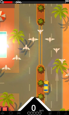 游戏是一键控制,点一下车就会转换一下方向。玩了这么一会儿小编好像已经知道玩法了,只要不撞黄色的障碍,撞击其他障碍好像是都可以加分的,尤其是那种激光障碍,加的分贼多。总体来说是一款不错的敏捷型游戏。游戏还设有全球排行榜,让玩家可以与世界各地的车手一较高下。
