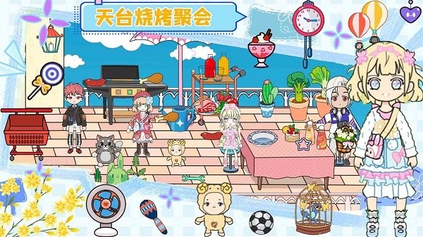 游戏画面风格清新可爱,所有角色都采用Q版设计,萌态十足。服装系统提供了海量免费选择,从日常穿搭到派对礼服应有尽有。玩家可以通过搭配不同造型来提升时尚品味,还能参加游戏内的时尚比赛。互动玩法丰富多样,不仅能装饰房间、举办派对,还能与其他玩家交流搭配心得,分享快乐时光。