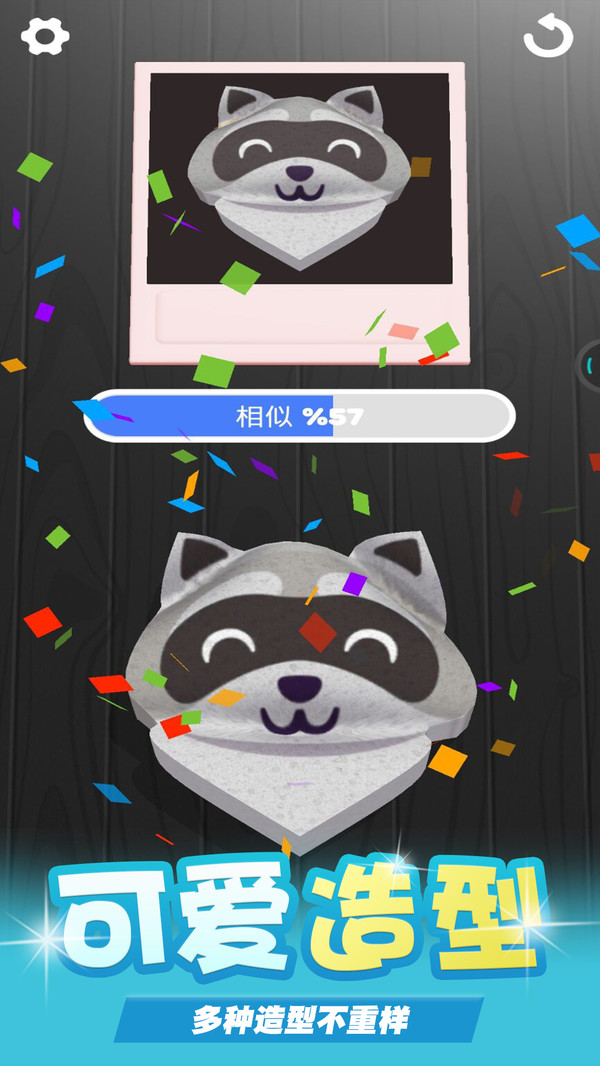 游戏提供了超级丰富的工具选择,从基础造型工具到特殊效果工具一应俱全,让玩家可以尽情发挥创意。清新简约的画面风格搭配巧妙的构思设计,让每个玩家都能找到自己喜欢的创作方式。随着游戏进程,临摹图的复杂度会逐渐提升,难度也随之增加,让玩家在挑战中不断提升技巧,最终成为真正的海绵造型大师。每个关卡都会提供不同的参考图片,玩家需要创造出相似度达到要求的作品才能通关。