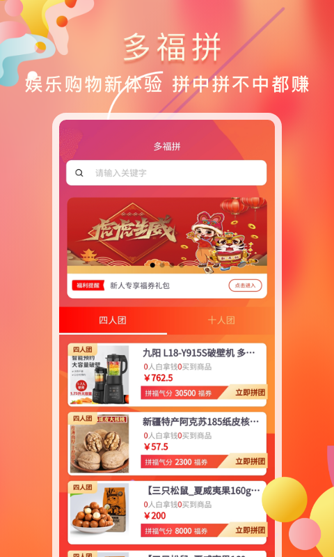 多福拼是一款引领潮流的拼单购物应用,致力于为用户打造极致性价比的消费体验。通过创新的拼团模式,这款应用将海量优质商品以超低价格呈现给消费者,让您足不出户即可享受购物的乐趣。平台汇聚了服饰、数码、家居等全品类商品,每日更新上千款精选好物,更有专属限时折扣和节日特惠活动。无论是追求时尚的年轻人,还是注重实惠的家庭用户,都能在这里找到心仪商品。一键拼团功能让购物变得简单高效,智能推荐系统则根据您的浏览习惯精准匹配商品,真正实现个性化购物体验。