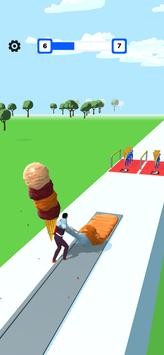 操作方式简单直观,通过左右滑动屏幕控制角色移动。长按屏幕可以加速冲刺,但要注意冰淇淋可能会因此掉落。游戏创新性地加入了"喷溅"机制,当冰淇淋堆到一定高度时,可以主动洒出冰淇淋吸引路人,将他们转化为忠实顾客,这个设计大大增加了游戏的可玩性。
