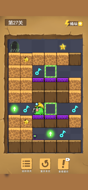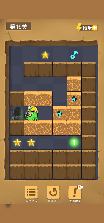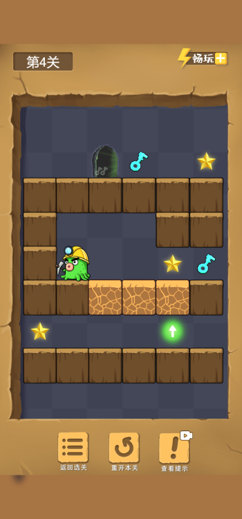游戏操作非常简单,通过滑动屏幕就能控制小章鱼上下左右移动。你的目标是收集迷宫中的所有钥匙,然后找到出口。特别要注意的是,迷宫中浅黄色的方块是可以被章鱼破坏的,合理利用这个特性才能找到最佳路径。随着关卡推进,游戏难度会逐渐增加,会出现更多有趣的机关和障碍物,需要玩家开动脑筋才能顺利通关。