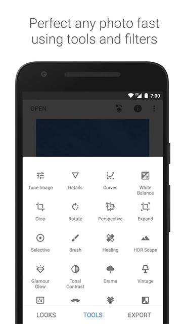 Snapseed是Google推出的一款功能强大的移动端照片编辑应用,专为安卓用户设计。它集成了29种工具和滤镜,包括画笔、修复、HDR、透视调整等高级功能,满足用户从简单修图到专业级后期处理的需求。软件支持JPG和RAW格式文件,并提供“视角”工具自动校正照片畸变。独特的“选择性调整”功能允许用户精准控制画面局部区域的亮度、对比度和饱和度。Snapseed采用直观的手势操作界面,所有编辑步骤都可通过“堆栈”功能随时查看和修改。用户还能将自定义滤镜保存为“样式”,一键应用于其他照片。作为Google旗下产品,Snapseed完全免费且无广告,定期更新带来更强大的编辑功能和性能优化。