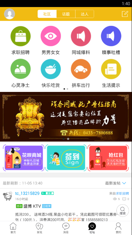 珲春同城App让您随时随地探索珲春的新鲜事物!作为珲春人专属的生活助手,它不仅提供各类便民服务,还汇聚了本地最新资讯和活动信息。无论是美食推荐、娱乐活动,还是社区动态,珲春同城App都能为您呈现最真实、最贴近生活的本地内容,让您不错过任何精彩瞬间。